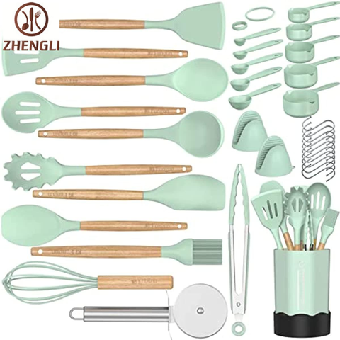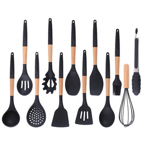 Силиконовые кухонные принадлежности, деревянные ручки, кухонная утварь с 12 штуками в 1 наборе